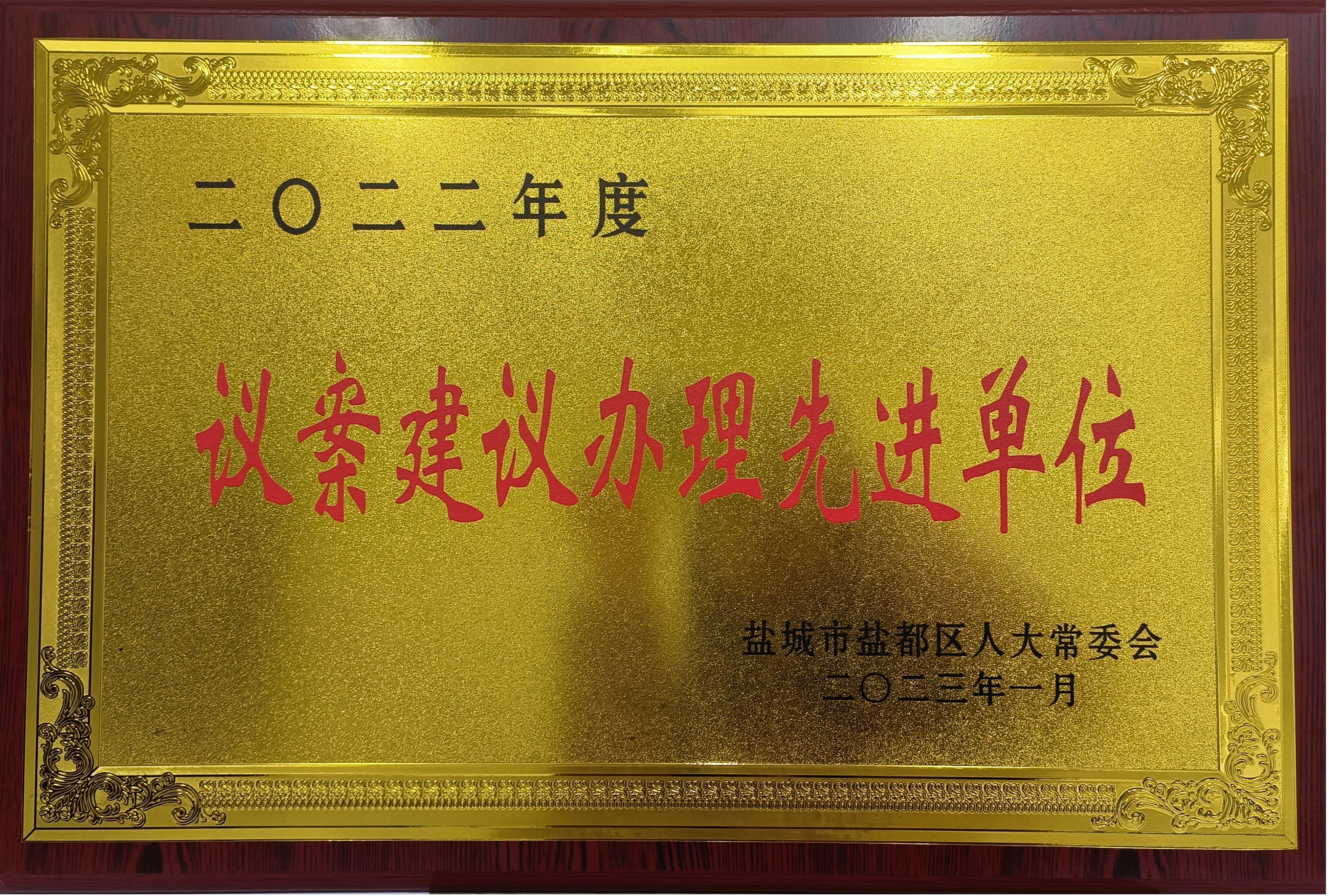 近日,集團(tuán)榮獲“2022年度鹽都區(qū)議案建議辦理先進(jìn)單位”稱號(hào)。2022年,集團(tuán)高質(zhì)量完成各項(xiàng)辦理任務(wù),承辦的人大代表議案建議滿意率達(dá)100%,真誠(chéng)回應(yīng)了區(qū)人大代表、群眾的關(guān)切。